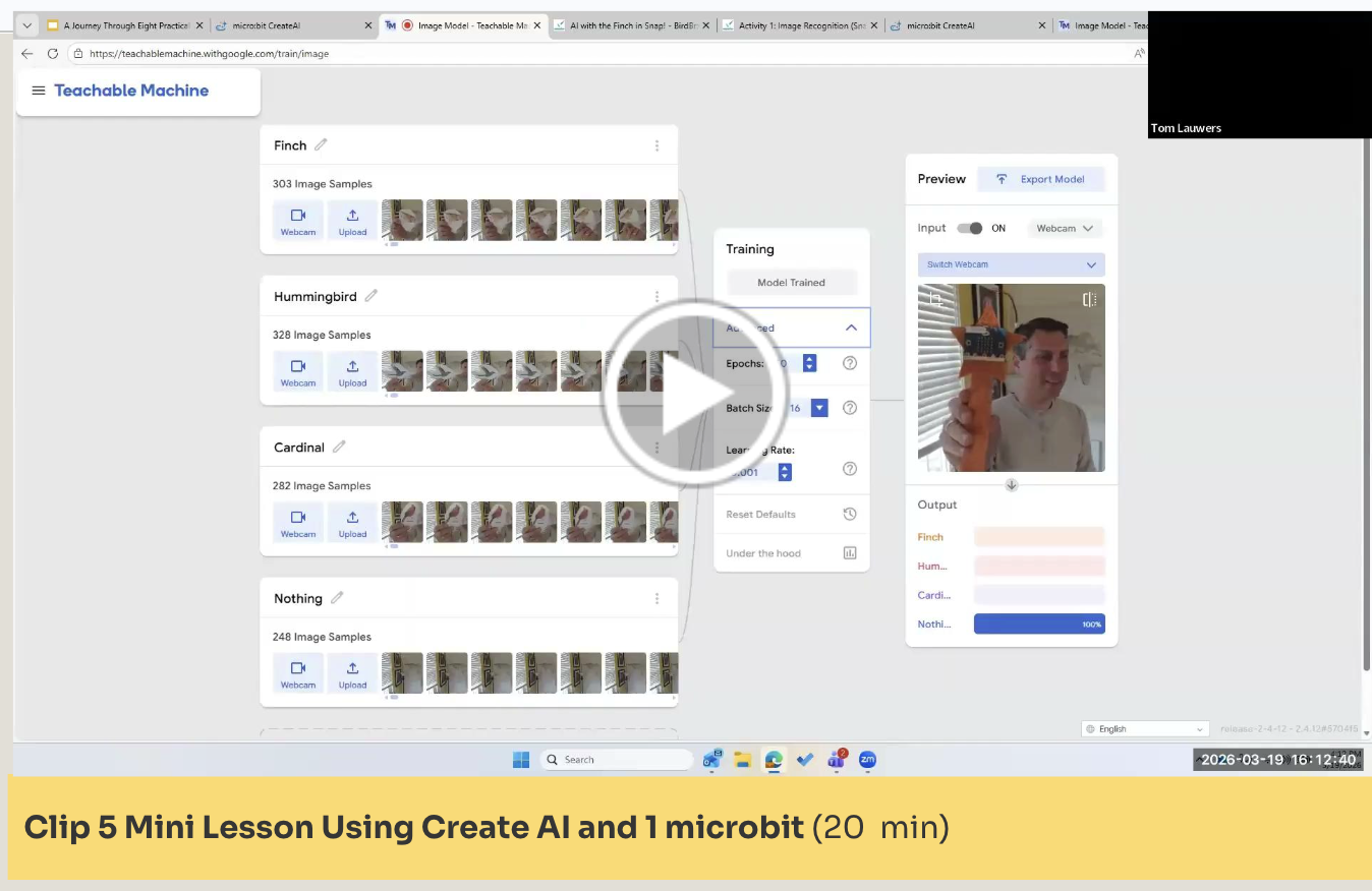 In this mini lesson Tom showed us how to create a magic wand with a microbit that uses use AI for gesture recognition using Create AI website