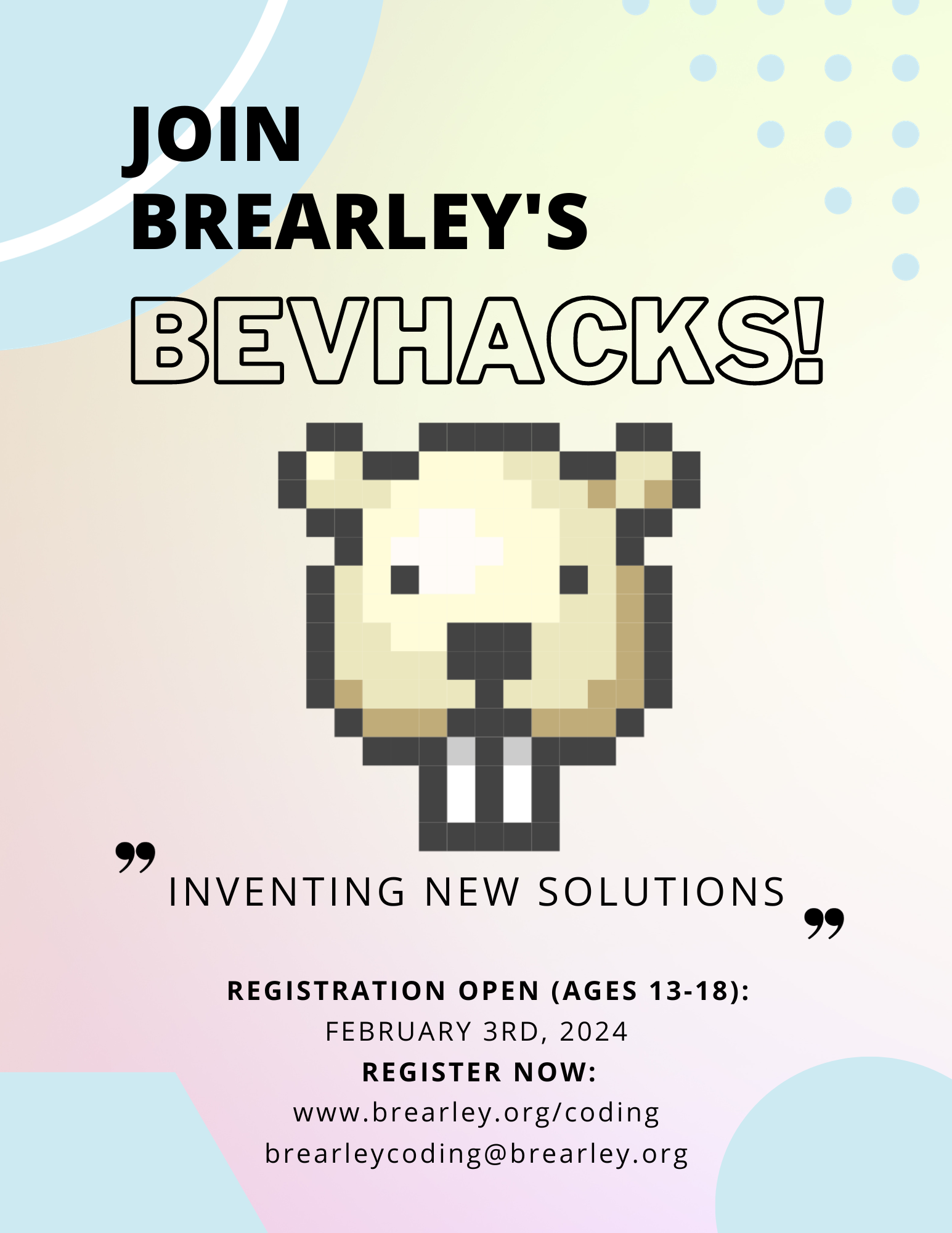 We are so excited to invite you to Brearley's BevHacks!! This year the hackathon will be on February 3rd, 2024 at the Brearley School (590 East 83rd Street), and will have many interesting speakers, sponsors, swag, and workshops!!!
