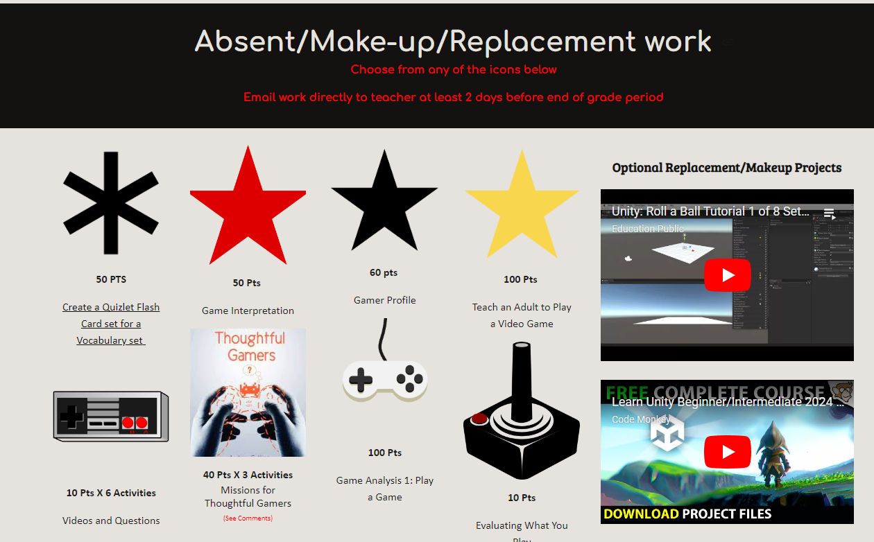 Most of my assignments are open ended. Allowing students to create a degree of "Wow" or creative Agency. (Don't know why but the word "Agency" always takes me a while to bring to the front of my brain.) Students are asked to prove they have met the minimum requirement, but there is always room to grow and they can choose what they learn if there is time after my assignment. Most of my assignments allow for 1 week to complete, so for those who can there is a lot of extra time for growth, and for those who struggle there is time to get the most out of the time as they can learn with a little less stress.